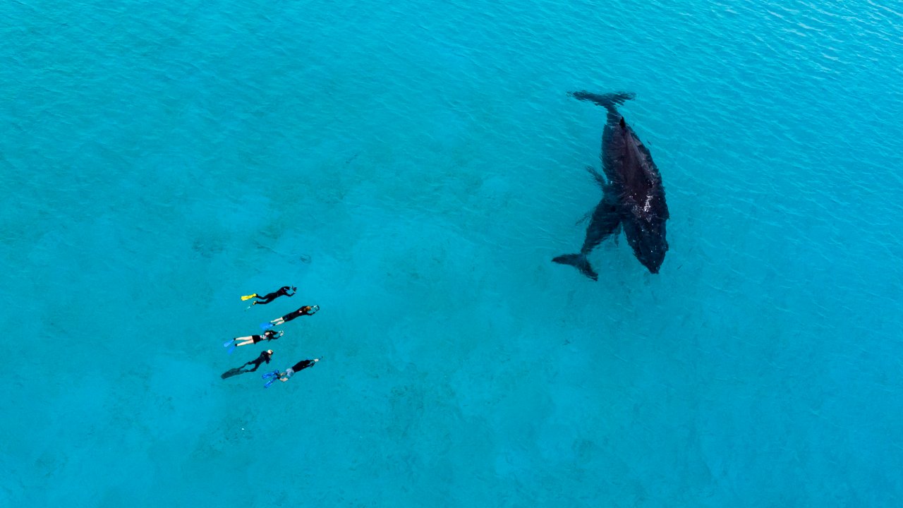 Join us in the pristine paradise of Ha'apai, Tonga, for an unforgettable adventure swimming alongside humpback whales.